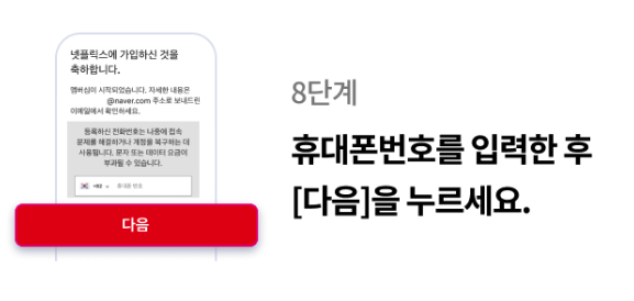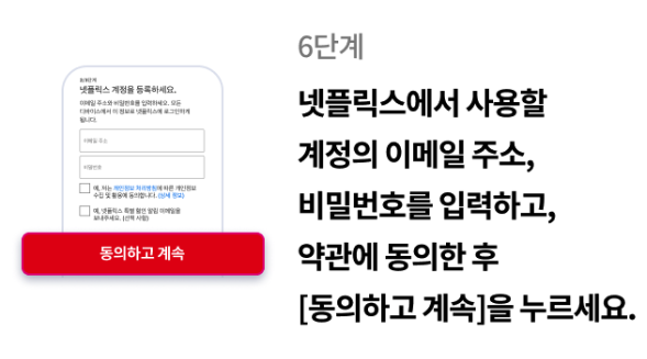 구독 신청 후, 기존 넷플릭스 계정과 연동하거나 새로운 계정을 생성하여 이용합니다.