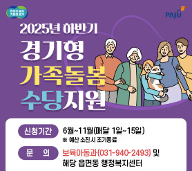 파주시가 2025년 하반기 '경기형 가족돌봄수당' 사업을 시작합니다. 6월 2일부터 온라인 신청이 가능하니, 조건에 맞는 가정이라면 놓치지 마세요